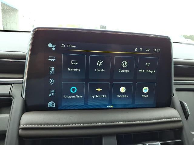 Advanced Trailering Package: Smart Trailer Integration Indicator; Integrated Trailer Brake Controller; Hitch View with Pan/zoom Image Adjustment. Driver Alert Package: Rear Cross Traffic Alert; Lane Change Alert with Side Blind Zone Alert. Luxury Package: HD Surround Vision; Heated 2nd Row Outboard Seats; 2nd Row Power Release 60/40 Split-Folding Bench Seat; Memory Settings; Power Tilt and Telescopic Steering Column; Rear Pedestrian Alert; Heated Steering Wheel; 3rd Row 60/40 Power-Folding Split-Bench Seat; Outside Heated Power-Adjustable Mirrors. Max Trailering Package: Extra Capacity Cooling System. Preferred Equipment Group 2Z7: Bright Front and Rear Door Sill Plates; Leather-Appointed Seat Trim; Remote Start; Hill Descent Control; 20" X 9" Machined Aluminum Wheels; Floor Console with Storage Area; Black Tubular Assist Steps; LED Daytime Running Lamps; Driver and Front Outboard Passenger Airbags; Memory Settings For Driver; Wireless Charging; Front High-Back Reclining Bucket Seats; Universal Home Remote; Color-Keyed Carpeting Floor Covering; Front Skid Plate; Front High-Approach Angle Fascia; Hands-Free Rear Power Programmable Liftgate; Chevrolet Infotainment 3 Premium System Radio; Bose 9-Speaker Stereo Audio System Feature; 2-Speed Active Electronic Autotrac Transfer Case; 1st and 2nd Row Color-Keyed Carpeted Floor Mats; Enhanced Driver Information Center; Red Horizontal-Mounted Recovery Hooks; SiriusXM with 360L; Wrapped Steering Wheel; 275/60R20SL AT BW Tires; Auto-Dimming Inside Rearview Mirror. Dual-Pane Power Panoramic Sunroof. Power Release 2nd Row Bucket Seats. 1st. 2nd & 3rd Rows All-Weather Floor Liners (LPO). **Equipment liste